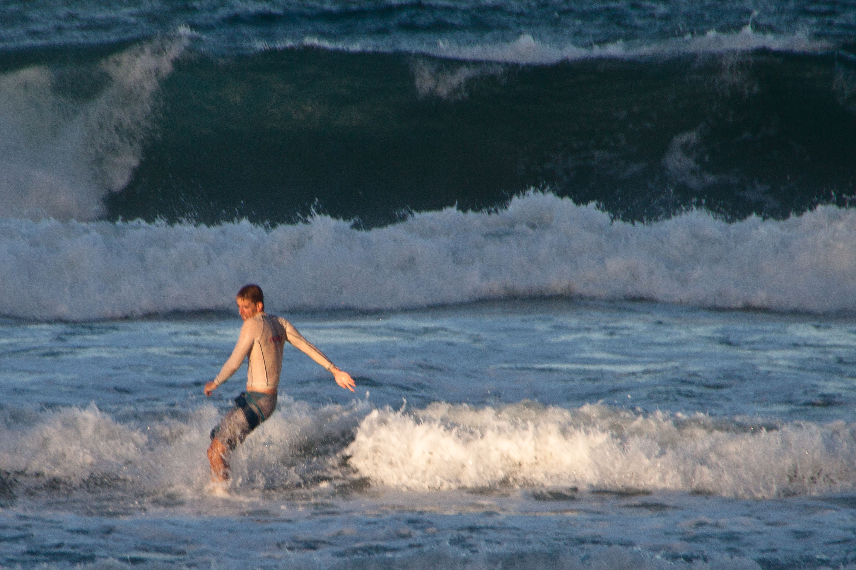 Surfing at the end of the day is easily the most interesting. The local kids get waves every day so near the end of the day when the wave quality and the visibility is declining they don’t see a need to be there anymore. In addition to the empty waves, I got to watch the sunset behind me cast beautifully warm light across the waves as they rolled out from the massive ocean under me (as I waited for a big one to smash me). I’m getting better at photography on this trip and wish there was a way to capture the way the horizontal light increases the contrast of everything around me, the whitewater, the trees around the bay, and the rock formations. Everything looks amazing, it’s totally quiet, and if I happen to be out there alone, I get the narcissitic feeling that somehow the moment was meticulously crafted just for me.